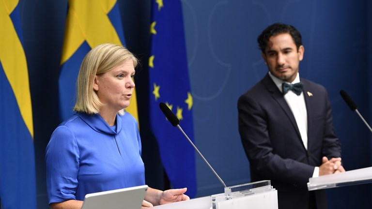 Wasiirka Maaliyadda Magdalena Andersson (S) iyo Wasiirka Caymiska Bulshada Ardalan Shekarabi (S) waxay ka hadlayaan arimo cusub oo ku saabsan miisaaniyadda soo socota.