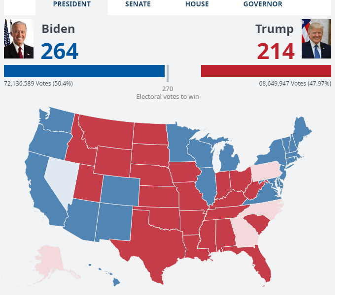 lix cod ayaa ugu hartay Joe Biden si uu u helo 270 taasi oo ka dhigaysa in uu noqdo madaxweynaha Cusub ee Mareykanka