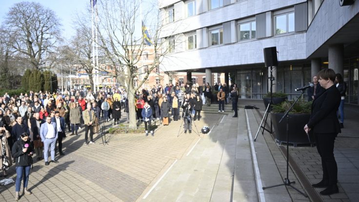 Dhawr boqol oo qof oo reer Malmö ah ayaa galabta isugu soo baxay afaafka hore ee xarunta dawladda hoose, waxaana ay muddo hal daqiiqo ah aamusnaayeen, si ay u xusuustaan labadii qof ee ku dhintay weerarkii dugsiga ee Malmö oo uu arday ku dilay fiidnimadii Isniinta.