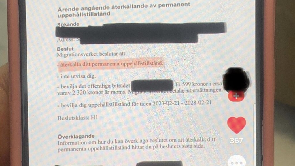 Baraha Bulshada ayaa lagu baahiyay Sawiro muujinaya Qof laga ceshtay Deganaanshaha Rasmiga uu ku lahaa Wadanka Sweden hadaba maxaa ka jira in Qof laga ceshto Sharciga Rasmiga.